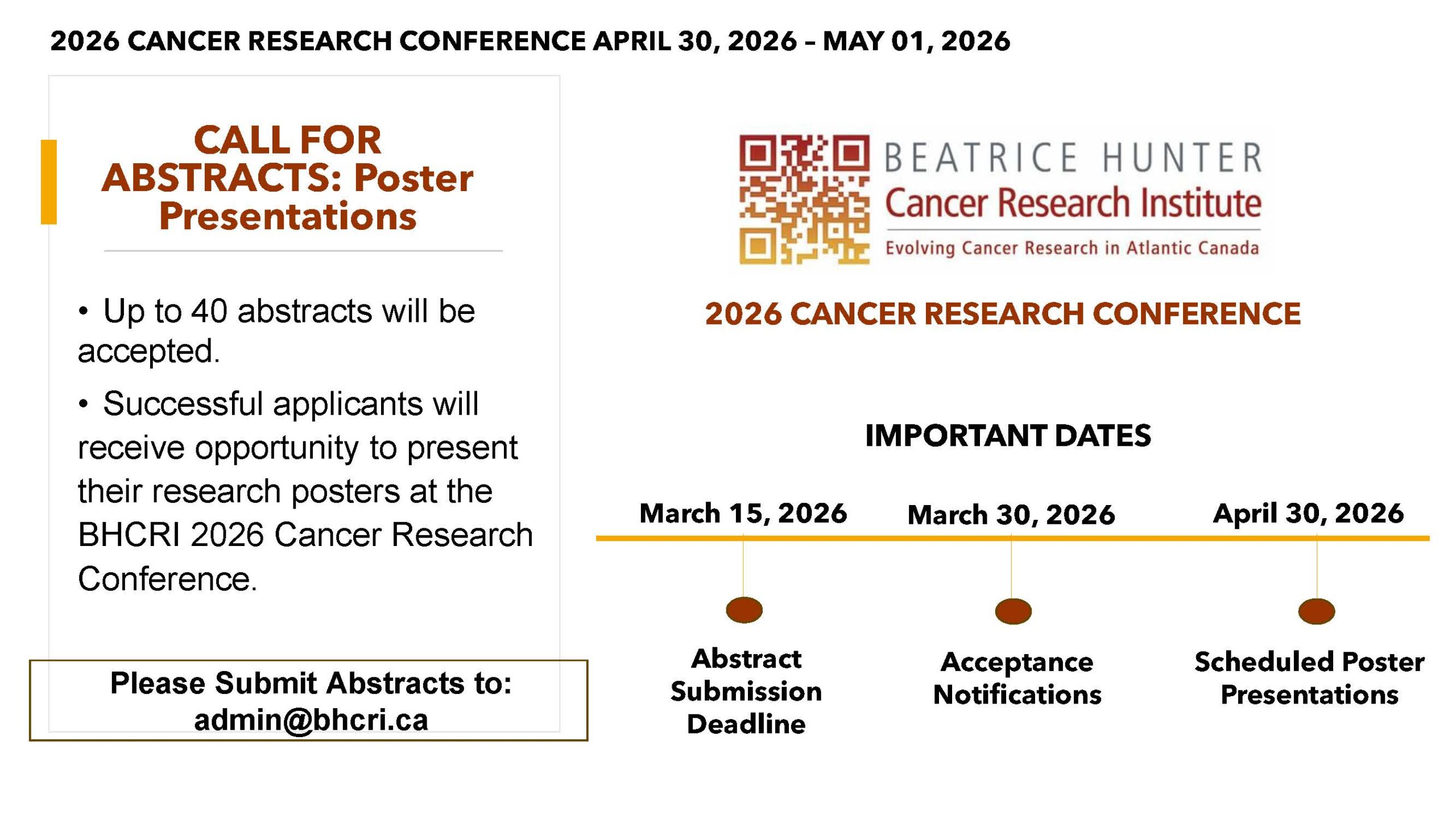 « All Events Abstracts Submission Deadline – 2026 Cancer Research Conference Poster Presentations March 15 « 2026 BHCRI Summer Studentship Awards Deadline BHCRI 2026 Annual Cancer Research Conference » Please submit abstracts to admin@bhcri.ca Add to calendar Google Calendar iCalendar Outlook 365 Outlook Live Details Date: March 15 Website: https://bhcri.ca/cancer-research-conference/